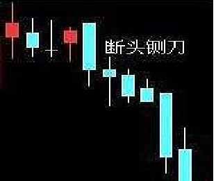 16.断头铡刀应用法则:一根大阴线切断了三根均线,改变了均线的排列为空头排列,后势看空。