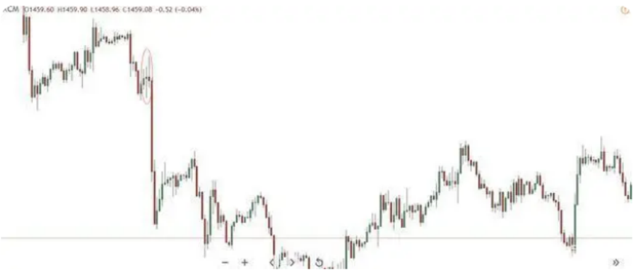 如果原趋势为下跌趋势,当出现下引线较长的蜡烛线形态时说明下方的支撑较为强劲,这时我们要警觉起来,下跌行情可能失去动力从而进入盘整行情或发生反转行情。