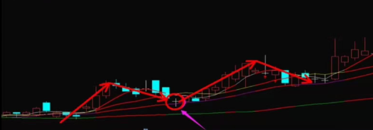 影线代表转折信号,向一个方向的影线越长,越不利于股价向这个方向变动,即上影线越长,越不利于股价上涨,下影线越长,越不利于股价下跌。以上影线为例,在经过一段时间多空斗争之后,多头终于晚节不保败下阵来,一朝被蛇咬,十年怕井绳,不论K线是阴还是阳,上影线部分已构成下一阶段的上档阻力,股价向下调整的概率居大。同理可得下影线预示着股价向上攻击的概率居大。