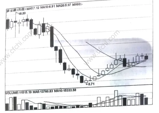 投资者需要注意的是,用月A 线米选择个股进行中长线投资时,应结合均线、形态及量价的变化,及时把握主力的动向、主力吸纳的迹象,在形态的突破点上及时介入庄股,以便达到盈利的目的。