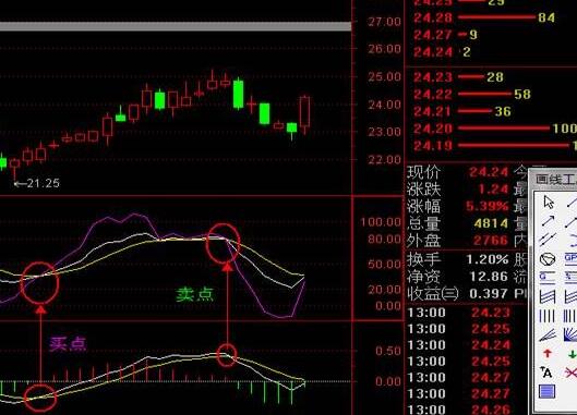 卖点即:MACD和KDJ几乎同时形成死叉