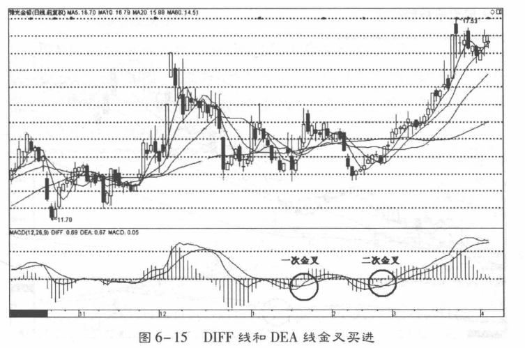 1.利用DIFF 线和DEA线的金叉买进方法