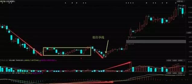 利用MACD指标选股时,一般选择股价经深幅下挫,长期横盘的个股,同时伴随成交量的极度萎缩,随着股价开始小幅扬升,MACD指标上穿零轴。但此时还不是介入时机,还应耐心等待股价回调,待MACD指标回至零轴之下,再观察股价是否创新低。在股价不创新低的前提之下,股价再次上扬,同时MACD指标再次向上穿越零轴时,则选定该股,此时为最佳买进时机。