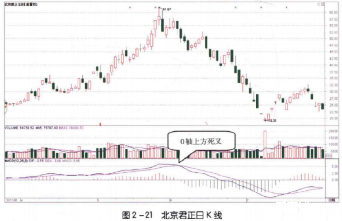 这样的死又越接近0轴,说明发生死叉时股价的上涨趋势越弱,未来进人下跌趋势的可能性也就越大。