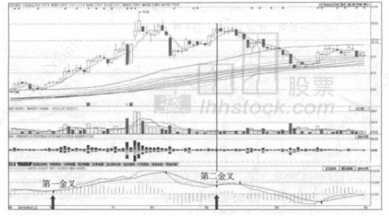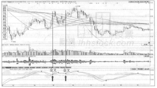 从以上几个例子可以看出MACD零上金叉后确有上涨的可能,但是,也会出现套牢。从趋势上分析,MACD爬上了零轴,形成了上涨的趋势,再加上MACD的金叉论。基于这些理由,股民看到MACD零士金叉当然就乐观了,但是,从前面的几个例子中可以看出金叉之后或金叉之时买入,都是追高买入。我们再看些出现零上金叉后股价一路下跌的失败的图形。