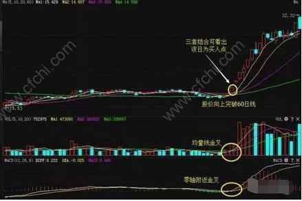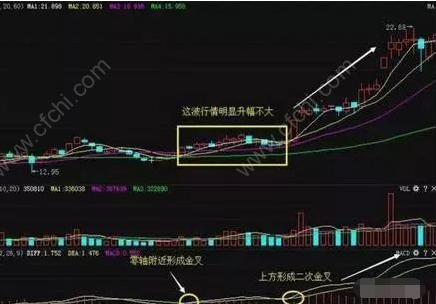 当股价上涨的趋势已形成,零轴附近的金叉预示着调整行情已经结束,新一轮的上涨行情即将来临。此时如果还伴随着均量线的金叉,就说明股价的上涨得到成交量的支持,买入信号将更加可靠。