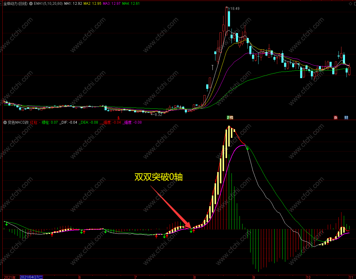 全柴动力600218 在2021年7月19日的时候,macd指标双双突破0轴,之后迎来一个大波浪趋势。