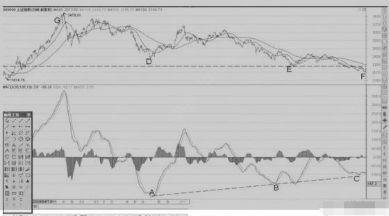 在熊市中,指数的下跌可以是一波三折的。宽幅震荡总会存在,但是指数下跌时间越长,短期反弹空间也会更小。如果判断指数已经持续回落,并且波动空间不断收窄,这个时候的DIF线很容易与指数底背离。底背离出现以后,指数的下跌趋势趋缓。如果投资者用DIF线和指数的背离形态判断买点。那么第二次背离以后,就可以确认个股的抄底机会了。