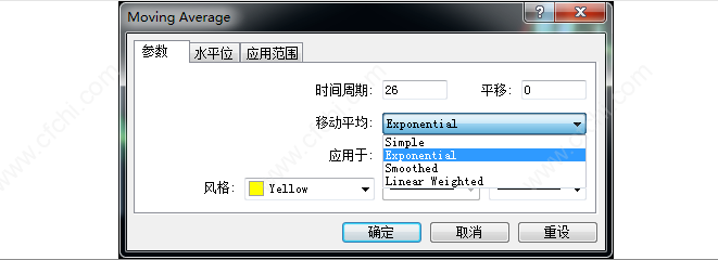 Exponential,指数移动平均线,MACD使用的是这一类。
