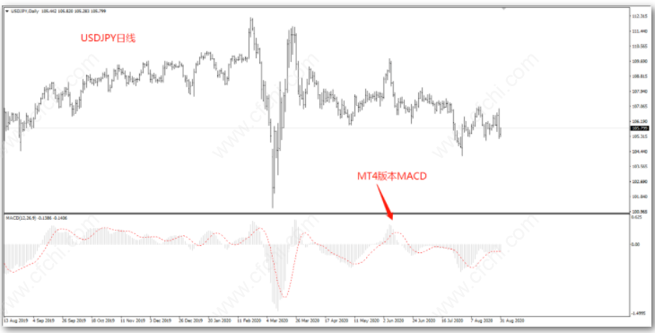 在MT4当中,自带的MACD指标与国内使用的不完全相同,最大的差别在于均线的个数。