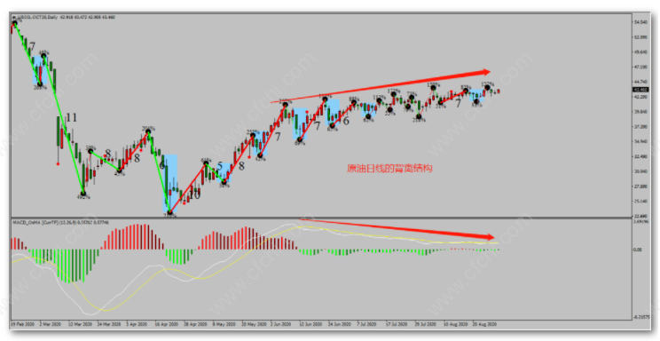 背离结构所依据的基本原理,就是观察行情走势在新一轮的突破当中力度是否足够,如果只是价位突破而力度(成交量/MACD峰谷)没有创出新高,则会形成背离结构,也就不看好趋势的延续。