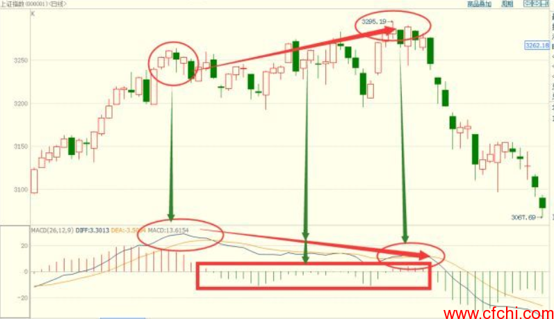 B、股价新高后,MACD快慢线却为死叉运行,并且快慢线在向下运行;