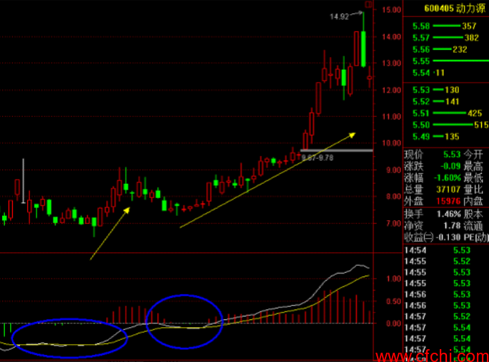 1.稳健的操作方法是:当DIF线与DEA线在0轴下方开始黏合的时候,就慢慢进场吸纳。