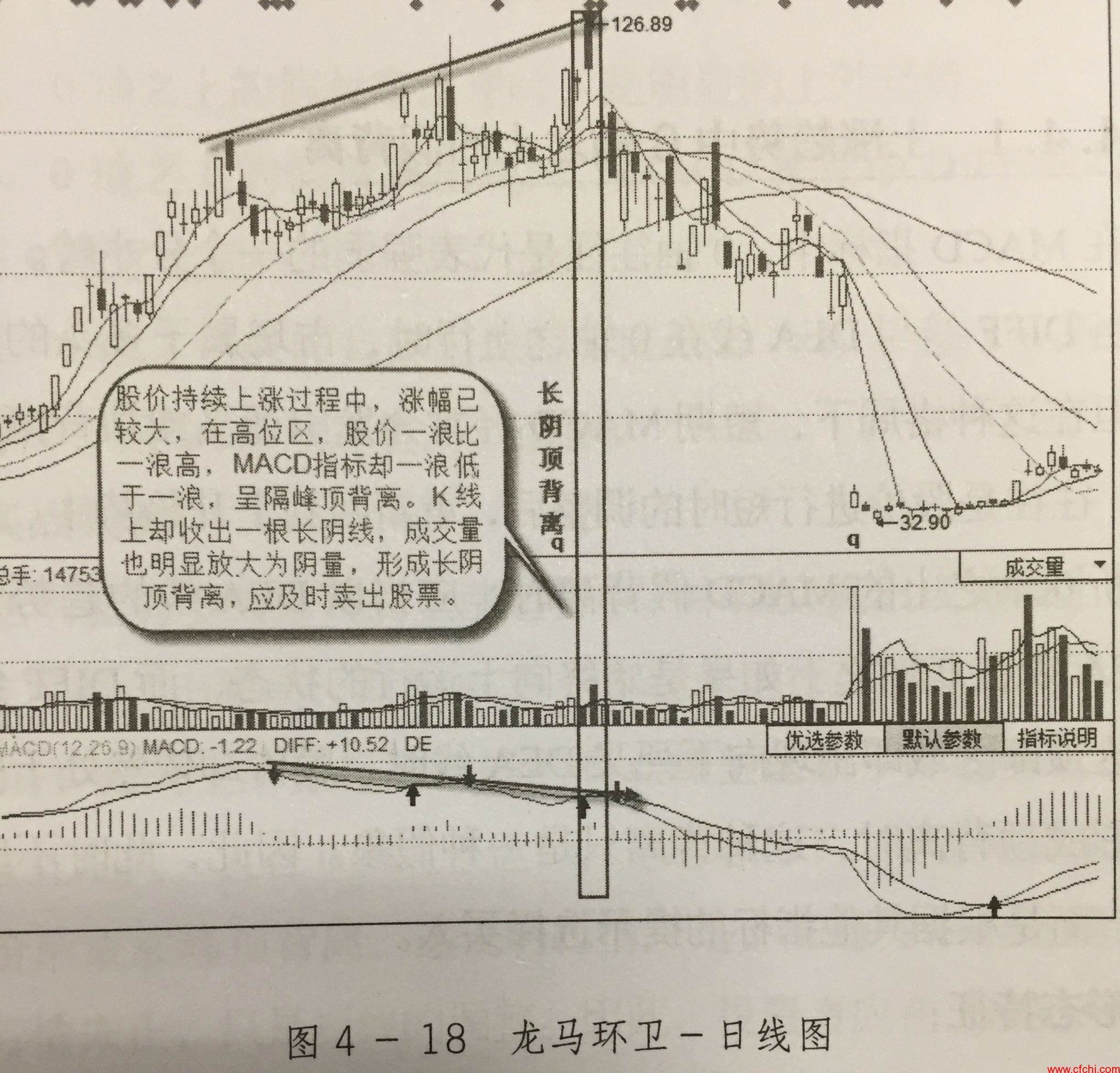 长阴顶背离,是指股价在上涨过程中,突然拉高后出现高开或是开盘后快速中高后快速回落的现象,并于当日收出一一根放量长阴线,而此时,MACD又出现高位区的向下运行,与股价的运行趋势形成顶背离。这种现象的出现说明资金在拉高股价后快速卖出筹码,从而导致股价的快速上涨和下跌。因此,是一一种强烈的高位卖出股票的形态。