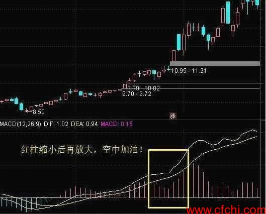 3、Macd指标中0轴线以上的第一个金叉初期——果断买入;