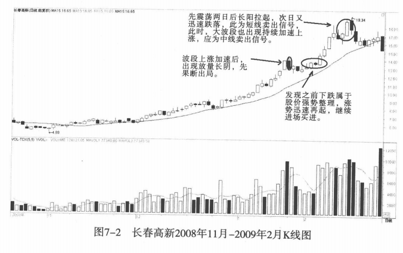以上一些图谱都是比较经典的卖出时机,当波段运行充分之后,一-旦股价出现风吹草动,我们就可准备出局了。