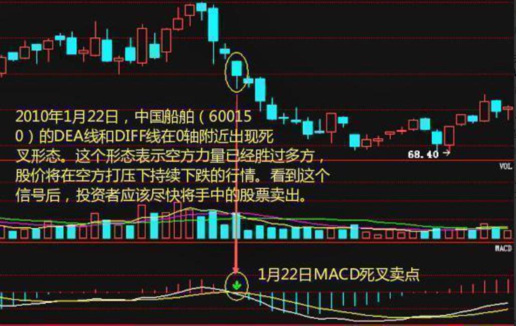 (1)如果MACD指标的死叉形态出现在0轴下方或者0轴附近区域,是十分强烈的卖出信号。如果MACD指标的死叉出现在0轴上方很高的位置,表示股价还在上涨行情中,虽然空方暂时取得优势,但股价长期上涨的趋势在短期内还难以改变。