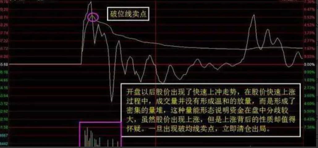 破均线卖点就是在错失高乖离机会情况下确定的,如果分时线从高位向下继续回落并跌破均价线时,一定要及时卖出。