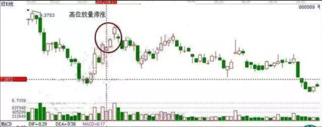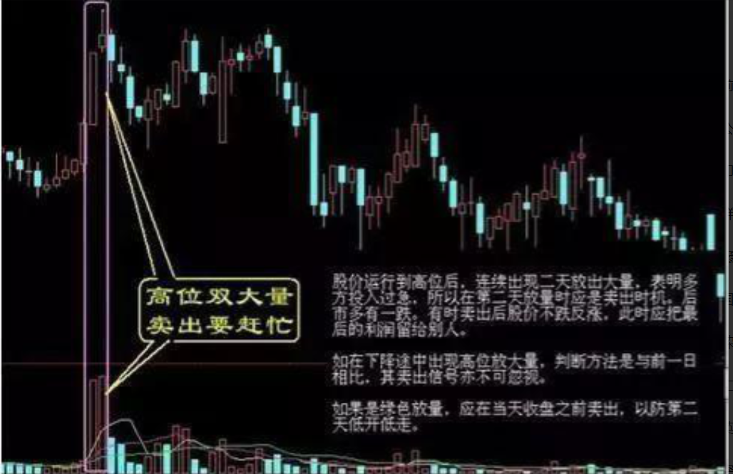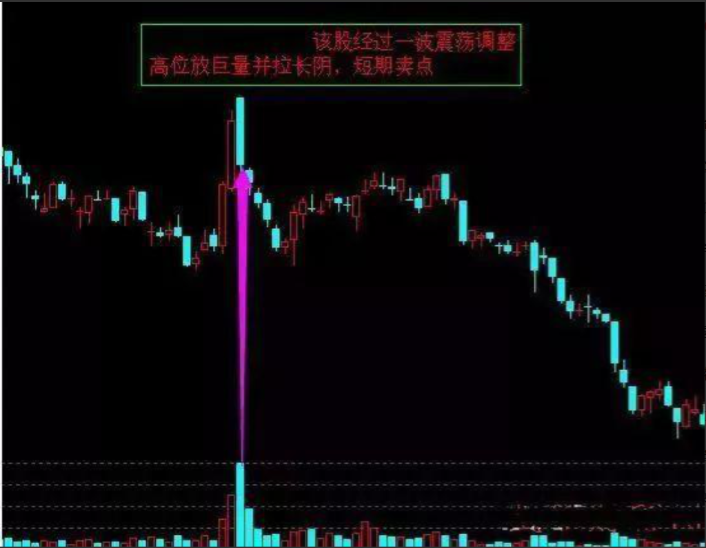 (2)高位放巨量收长阴时卖出:K线高位放巨量收长阴,通常是庄家出货信号。