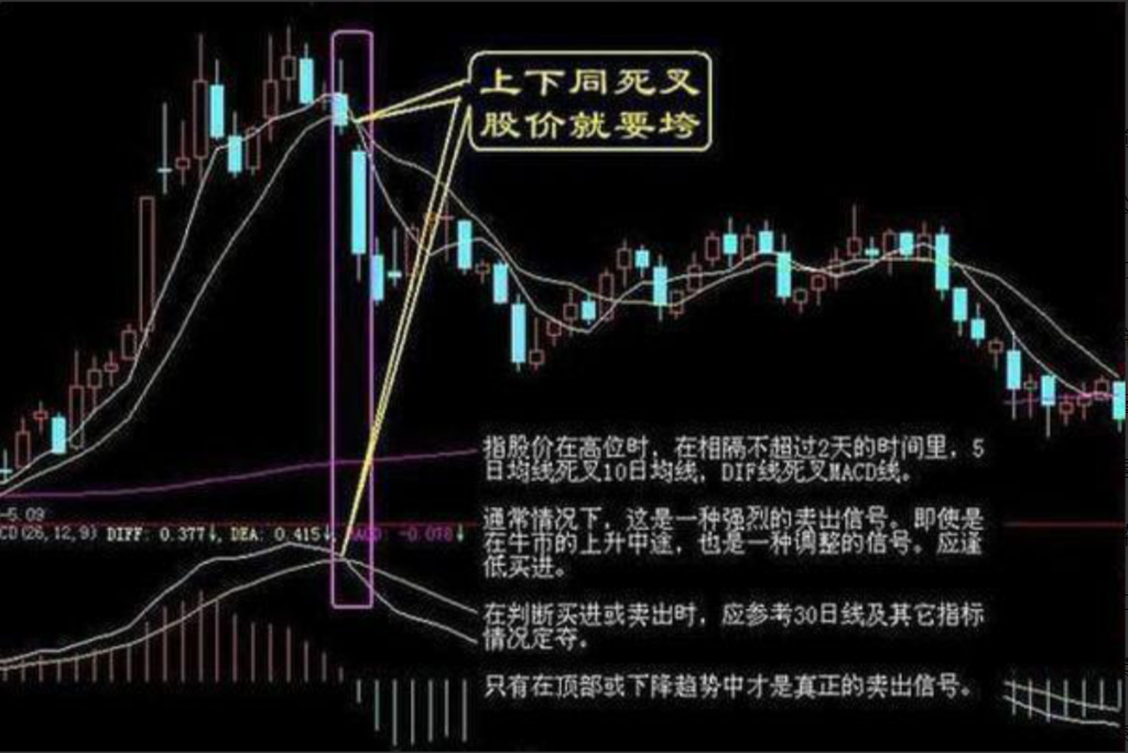 5、股价在高位均线与MACD双双形成死叉股价就要垮,注意股票要卖出,如下图