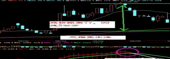 当股价经过上涨以后,距离77、99线达到三跟手指头以上的位置(大概5公分),此时股价将受到77、99线的向下吸引回落,配合macd的红柱缩头卖出。