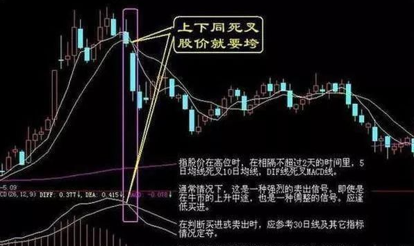 5、股价在高位均线与MACD双双形成死叉股价就要垮,注意股票要卖出,如下图: