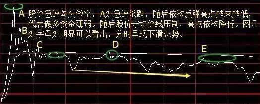 破均线卖点就是在错失高乖离机会情况下确定的,如果分时线从高位向下继续回落并跌破均价线时,一定要及时卖出。