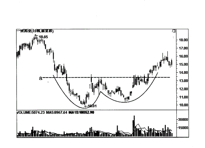 股价在卖盘的打压下,再次回落,当回落到前期低点时,先前没有介入的投资者,害怕再失去抄底的机会,于是在这个价位介入,介入该股的主力由于害怕股价继续下跌,筹码被散户抢走,于是开始拉升股价。在图6.3中,我们看到,当股价跌到前期低点时,受到支撑,开始反弹,同时成交量放大;作为投资者来说,在股价二次见底反弹时介入,安全系数较大,介入后成功率较高,但同时也要注意股价~下跌的风险。