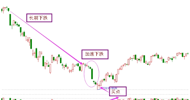 大盘或是个股在经历长时间的下跌之后,会突发的出现下跌加速,而成交量则连续的增长,这就是大胆买进的时机。