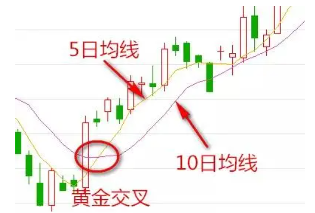 黄金交叉是指上升中的短期移动平均线从中长期移动平均线的下方向上穿破。股价见底反弹时,短期移动平均线最为敏感。