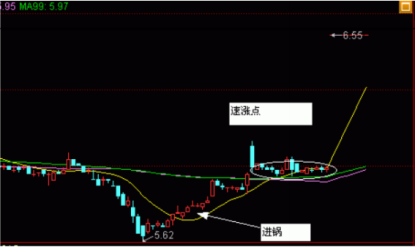 速涨点法是指77,99线已经走平(短线上升趋势已确立), 股价稳站在77, 99线之上,然后股价在这个位置做暂短的调整,调整后就要快速拉升。调整的位置就叫速涨点。(不是绝对的)。