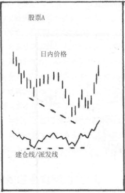 另外,有时候你会看到有些股票的股价大幅下跌,而建仓/派发线却几乎没有下降。这种情况在迪斯尼股票80美元的时候出现过,宝丽来也出现过同样的情况。