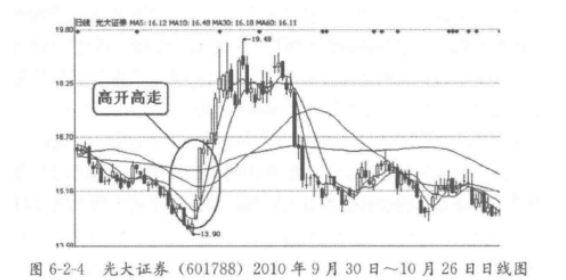 股价高开高走往往是一种逼空的行为,这种情况一旦出现,投资者应该及时跟进,否则会失去一次极好的短炒机会。短线投资者一且发现股价出现高开高走的情况,应该在其初次回档时介入。