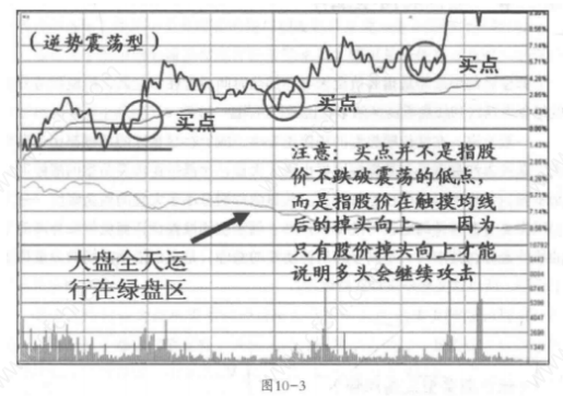 一、买点的出现往往是在大盘下跌的时候而不是在大盘上升的时候,因为它是逆向波动的;二、每一次的买点并不是指股价不跌破震荡的低点出现,而是指股价在触摸均线后的掉头向上时出现,只有股价掉头向上才能说明多头会继续攻击;三、逆市震荡型的买点,其成交量都很小,这是因为这个时候大盘在跌,一般人不敢买入。