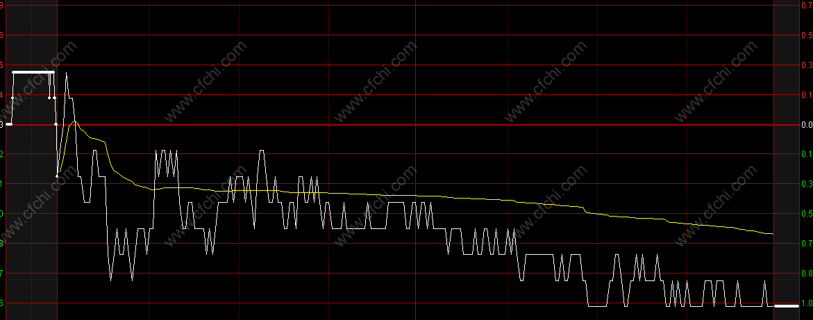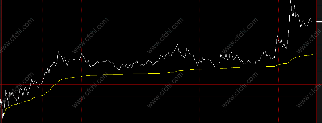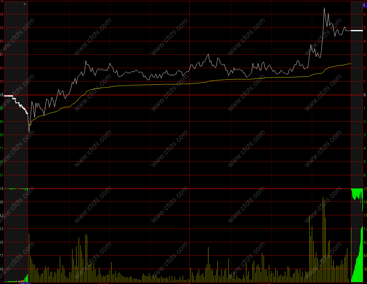 【黄色柱线】在红白曲线图下方,用来表示每一分钟的成交量。