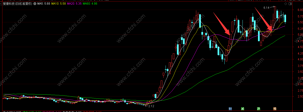 强势股如果前期暴涨,那么在下跌的时候,需要关注20日均线。如果发现在20日均线有回调后企稳的情况,那么可能是新的行情。