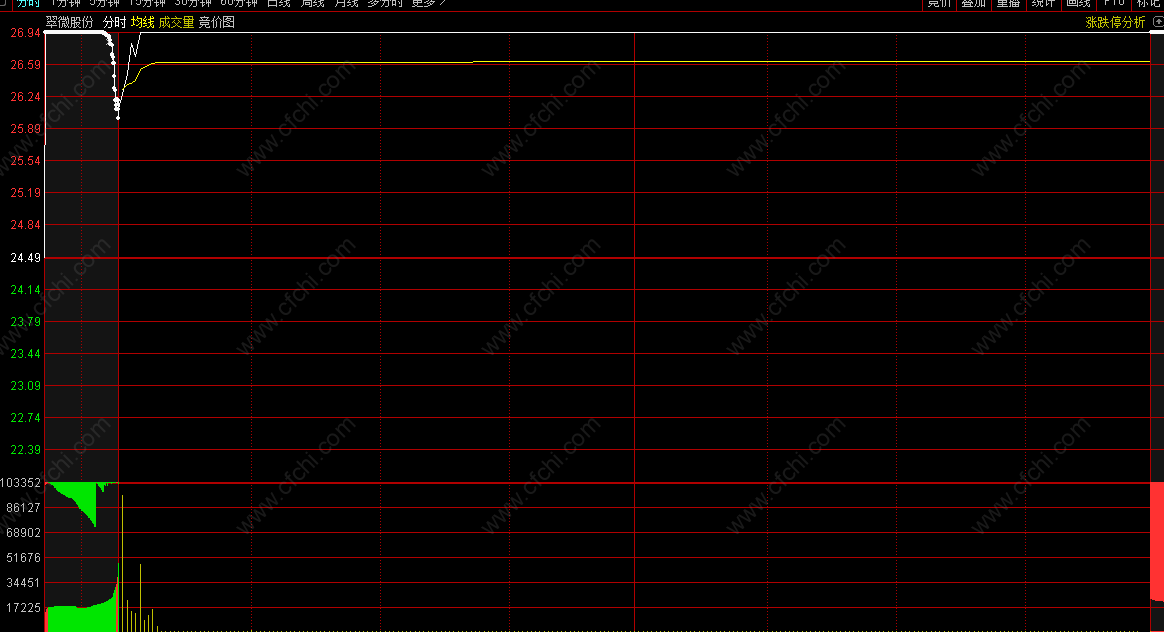 股价在开盘半小时左右放量大涨、换手率达到0.8% ~ 1%e ;股价在开盘一小时左右放量大涨,换手率达到1.2% ~ 1.5%;股价在开盘一个半时左右放量大涨,换手率达到1.7% ~ 2%。