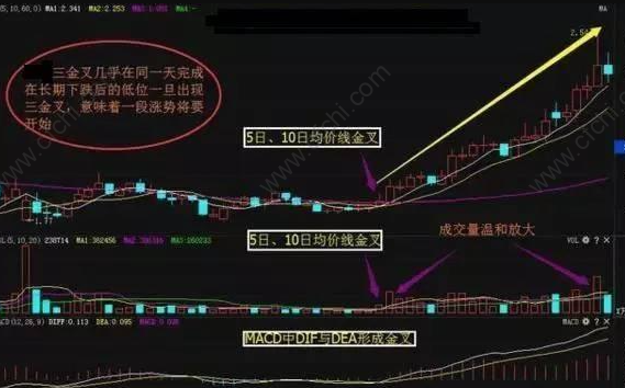 图形特征:由20日均价线上穿40日均价线的结点、20日均价线上穿60日均价线的结点、40日均价线上穿60日均价线的结点共同组成一个封闭的三角形。
