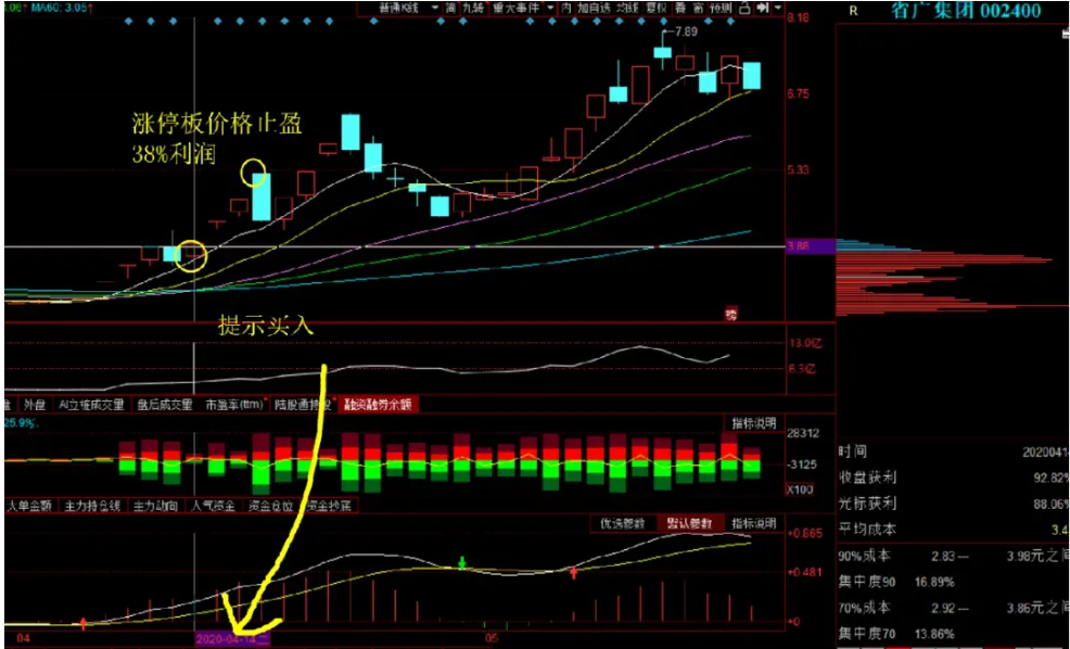 1、三线向上交叉时,预示新一轮上涨行情启动,可以在5日均线附近买入。