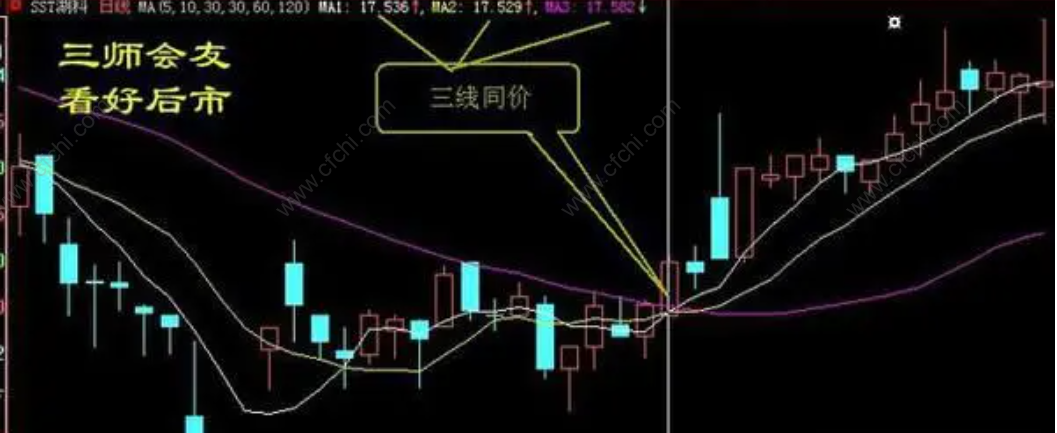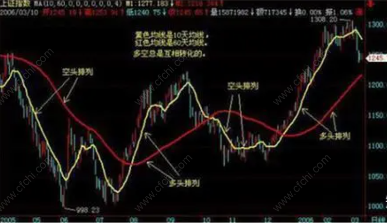 K线形态:股价呈长期缓慢的或快速的上升趋势,从上到下依次为10日线、30日线、60日线,且上升趋势不改变,如下图实例所示。