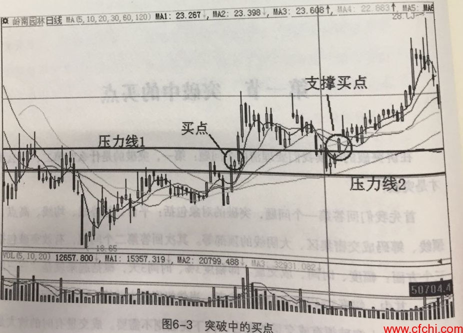 6.3中,我们也可以看到压力线2的支撑作用。而如果股民朋友们只是看到了压力线1而没有看到压力线2的存在就会怀疑压力线的作用。致使走人“买入->套牢一>割肉一>上涨”的股市怪圈。