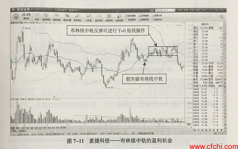 麦捷科技—布林线中轨的盈利机会,如图7-11所示。
