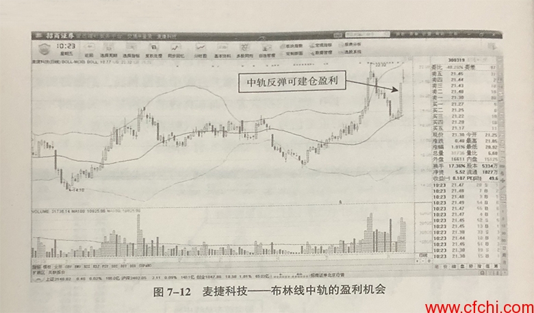 麦捷科技—布林线中轨的盈利机会,如图7-12所示。