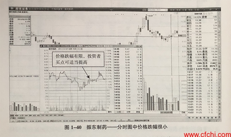 振东制药——分时图中价格跌幅很小,如图1-40所示。
