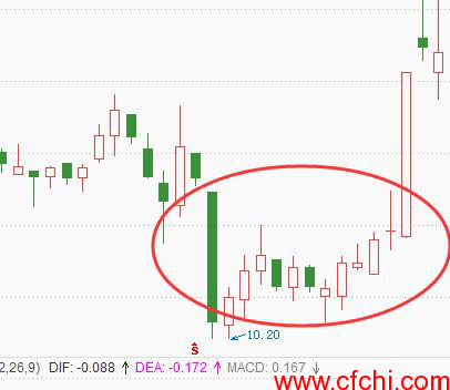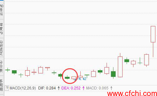 在形态上表明上涨动能在经过一段时间的集聚之后(小阴小阳的低位调整),已经彻底战胜下跌动能,股价即将出现一波上涨趋势。