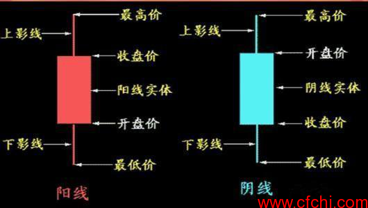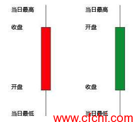 实体分阳线和阴线两种,收盘价大于开盘价为阳线,低于收盘价为阴线。一条K线记录的就是某一种股票一天的价格变动范围,K线反应当天多空力量的斗争经历,是当天多空争斗的记录。