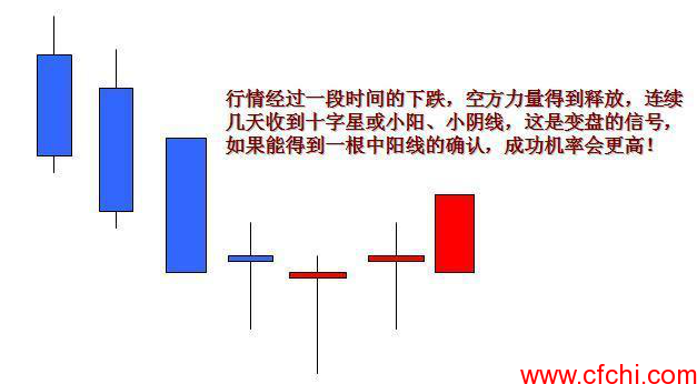 二、看实体大小 :实体大小代表内在动力,实体越大,上涨或下跌的趋势越是明显,反之趋势则不明显。