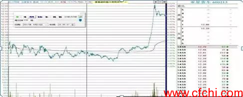 14点40开始,伴随着成交量放大,该股股价异动拉升,5分钟内迅速翻红。从当时行情来看,虽然大盘横盘震荡,但是处在新能源汽车概念最高潮的阶段,安凯客车连续3天一字涨停,该股异动拉升就表明庄家仍未放弃,此时便可跟庄进场。
