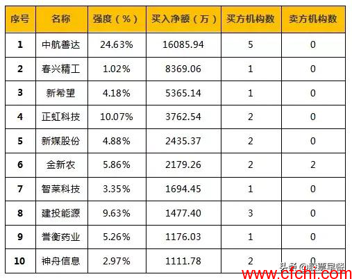 机构最新净买入金额排行