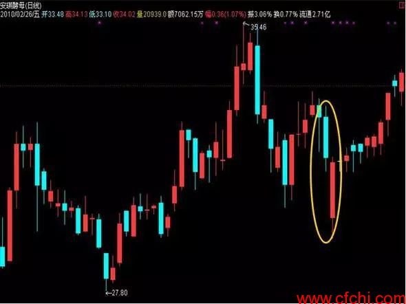 如果价格或指数刚开始下跌时出现中阴线,则表明空方稍占有优势,后市有继续下跌的可能,投资者可开始卖出;如果在连续上涨过程中出现中阴线,则要当心多头的诱空行为,此时投资者应该继续持有多仓。
